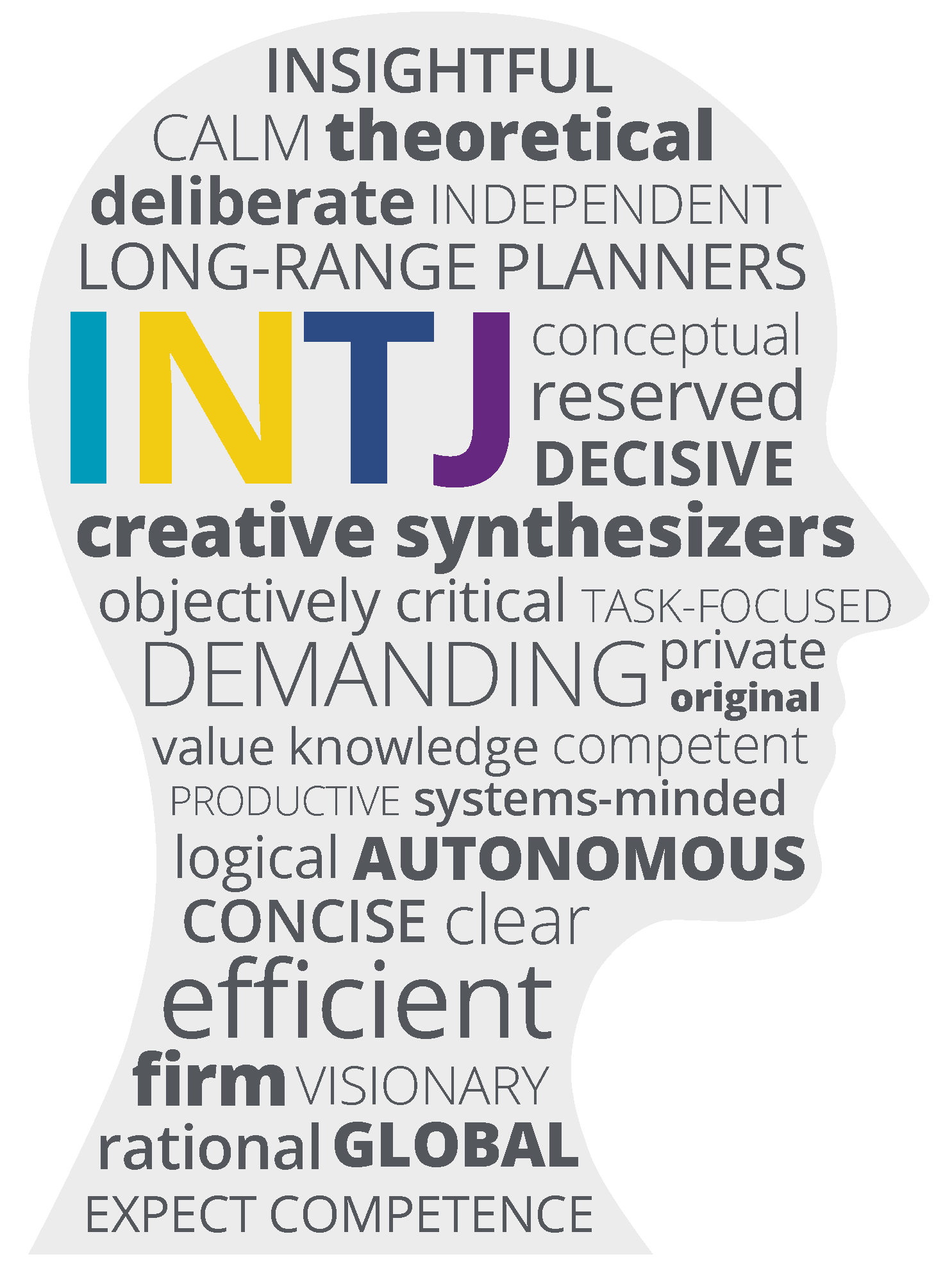 People with INTJ preferences tend to be independent, original, visionary, and determined.